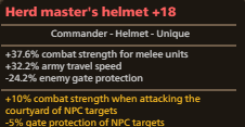 The "Looter commander" has the maximum looting capacity (70%) and can be used to quickly loot a massive amount of resources. You may also combine it to have also a maximum speed (80%) which then is can be used with superfast "Wolves" (80 travel speed) against empty castles or OPs. The loot capacity + speed can be achieved with combining a "looter" hero (that has "+11,250 army loot capacity when attacking enemy castle loads"), pieces that gives loot + speed and also embedding "Army loot capacity" (blue) gems into all 4 pieces, when those gems are at high level of 9,10 and up, you may easily reach over +50,000 loot capacity.